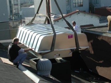 Happy new year! The only photogenic thing that happened this week was the arrival of the roof fans for the new ventilation system. There are two of them. They are big.