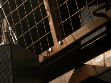 To hang the side speakers, some new mounting points had to be attached to the railings. The welder did this by detaching two old mounting loops that were no longer needed, and welding them back on in the new spot. Check out this quality fucking workmanship. Sure, we've got sharp little nubs sticking out where the old mounts used to be, but that's "good enough", right? Sure, all the other mounting loops are in line with each other, at exact right angles from the railing, but having the new ones be ten degrees out of whack is "good enough", right? This was, of course, not the same welder who did all the other fine metalwork in this place: he never would have done something so halfassed. I mean, I sure these out-of-whack mounts are strong enough, and I'm sure that just about no one but me would ever have a chance of noticing this, but we put a lot of attention to detail in this place, and every time I see it descending into the same level of half-assery by which other clubs work, it drives me crazy. The only reason this place isn't the same kind of dump it was before we remodeled it is that we obsessed over details like this, dammit!