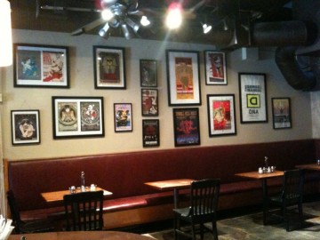 This is what I worked on today: DNA Pizza decor. All the artwork completely changes the place, for the better! It doesn't look so institutional in there any more. All the posters are from shows that have been at DNA, and most of them are autographed, which is cool! Still a work in progress, but I knocked out a big chunk of getting frames and getting posters into frames today...