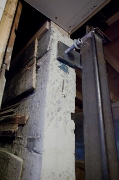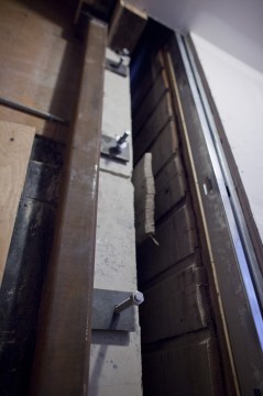 Now that the steel is in, the doors can finally be installed downstairs, and the new stairs upstairs can be completed.