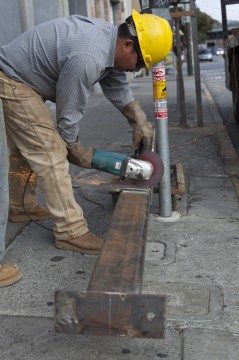The structural steel for framing the new doorways has arrived. Since we took out a bunch of concrete, our structural engineer made us put these big girders in to replace it. Here's the downstairs set: