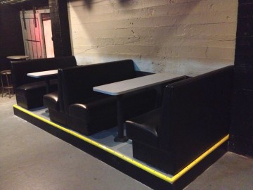 The downstairs booths are in, and we have nommed the inaugural DNA Pizza Bloody Mary. Yeah, that's pepperoni.