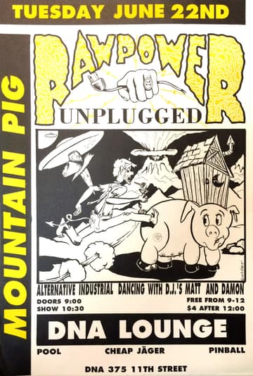 I recently acquired some DNA Lounge posters from the 1980s and early 1990s. I collect those, you know. You may have seen them on the wall of my restaurant. This time was a pretty good haul!