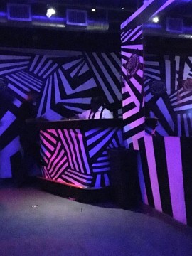 Also, we dazzled the dazzle bar! Painting it would have been a pain in the butt and looked bad, since its surface is covered with moulding and panels, so instead we just printed a vinyl banner and strapped it to the front. Works great! Now I've just got to get the bartenders up there to agree to wear dazzle-print zentai suits and we're set.And finally, some recently-added photo galleries: