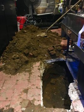 Apparently the drain pipes under the main bar have turned to dust. The reason the floor sinks weren't draining properly is that they were draining directly into the sand and burnt timber upon which our building rests.