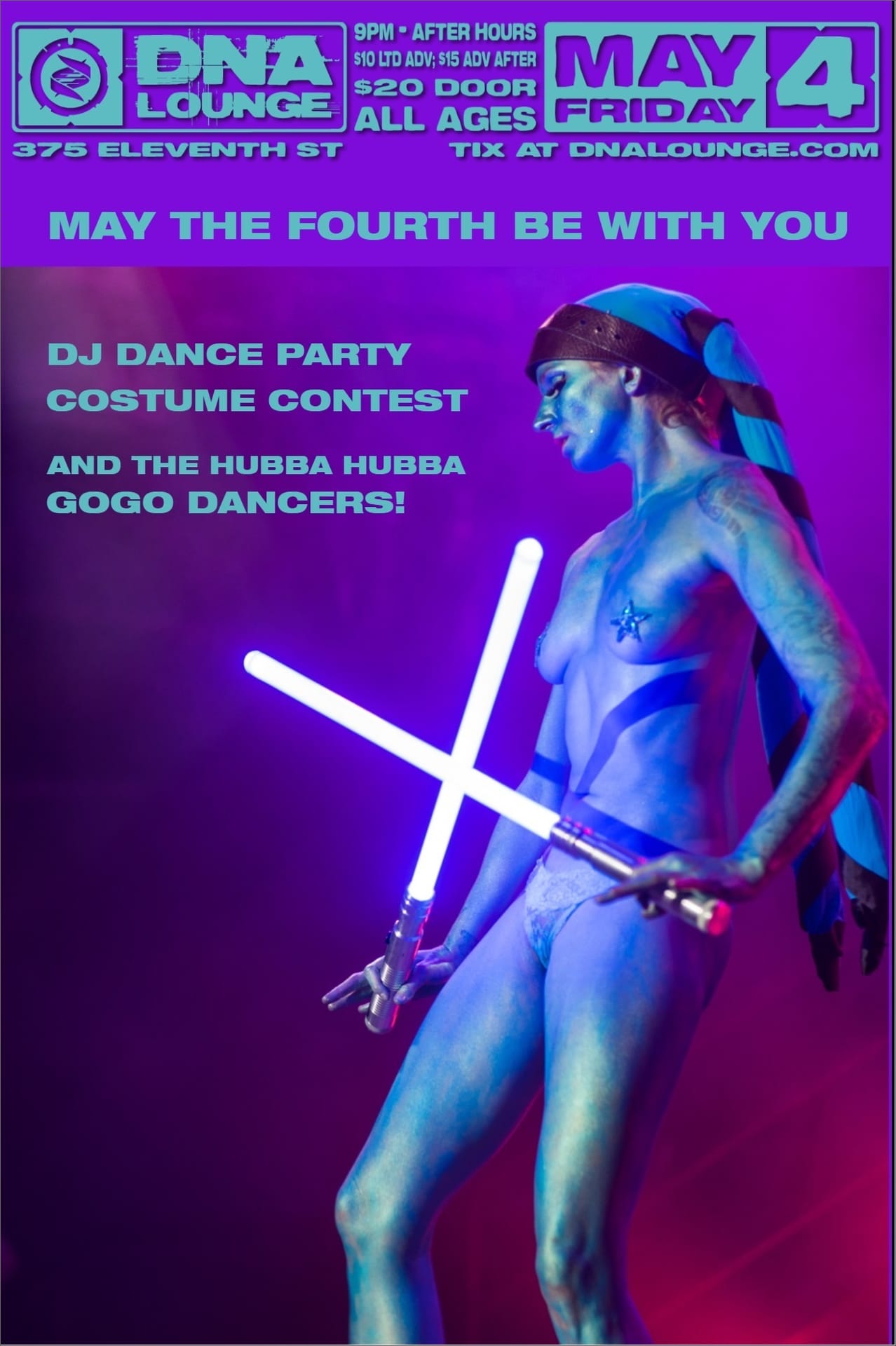 Tomorrow night: May The Fourth Be With You! Star Wars costume contest! Go-go dancers! Galactic raving! Sarlacc the Magnificent and the Execution of the Prisoners!