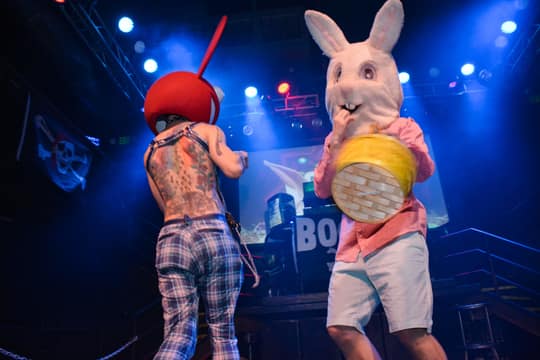 Case in point: a couple weeks ago we had a Peelander-Z show that we booked at kind-of the last minute. We already had a four room So Stoked party booked that night, so we were going to do Peelander-Z as an early show... but then we thought, what the hell, let's just combine the two. So a weird Japanese cartoon punk band (and Chaki the Funk Wizard, who is hard to describe using any other words than those) were the opening acts at a candy rave... And it worked! In addition to the people who obviously came for Peelander-Z, there were a lot of ravers in the audience who had looks on their faces like, "I have no idea what I am seeing right now, but I'm definitely sticking around."