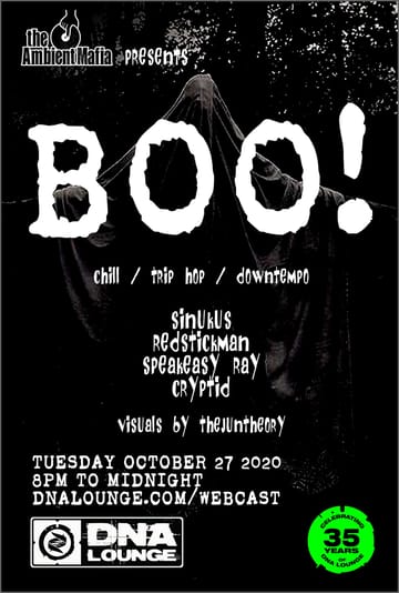 With DJs Sinukus, Redstickman, Speakeasy Ray & Cryptid. Join The Ambient Mafia, a Bay Area DJ collective operating for more than 20 years, for a spooky night of chill, trip-hop, and downtempo. - Wednesday, October 28th, 8pm: