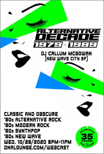 Obscure 80s alternative rock, 80s modern rock, 80s synthpop and 80s new wave, live from the DNA Lounge Main Room! - Thursday, October 29th: 8pm: