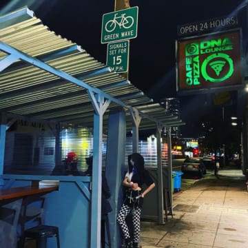We have upgraded our parklet for these plague times -- the new walls not only keep you away from the dread spittle of your friends and enemies, but the wind-breaking aspect also makes it significantly warmer out there, which is important since you can't go inside...