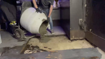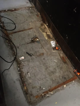 But when the area is too large, it's time to just cut it out and pour concrete. Mostly these aren't in "dancing" areas, so that's fine, but it does move the wood/concrete interface farther out into the room, which is not great as that's where things tend to go wrong in the future.