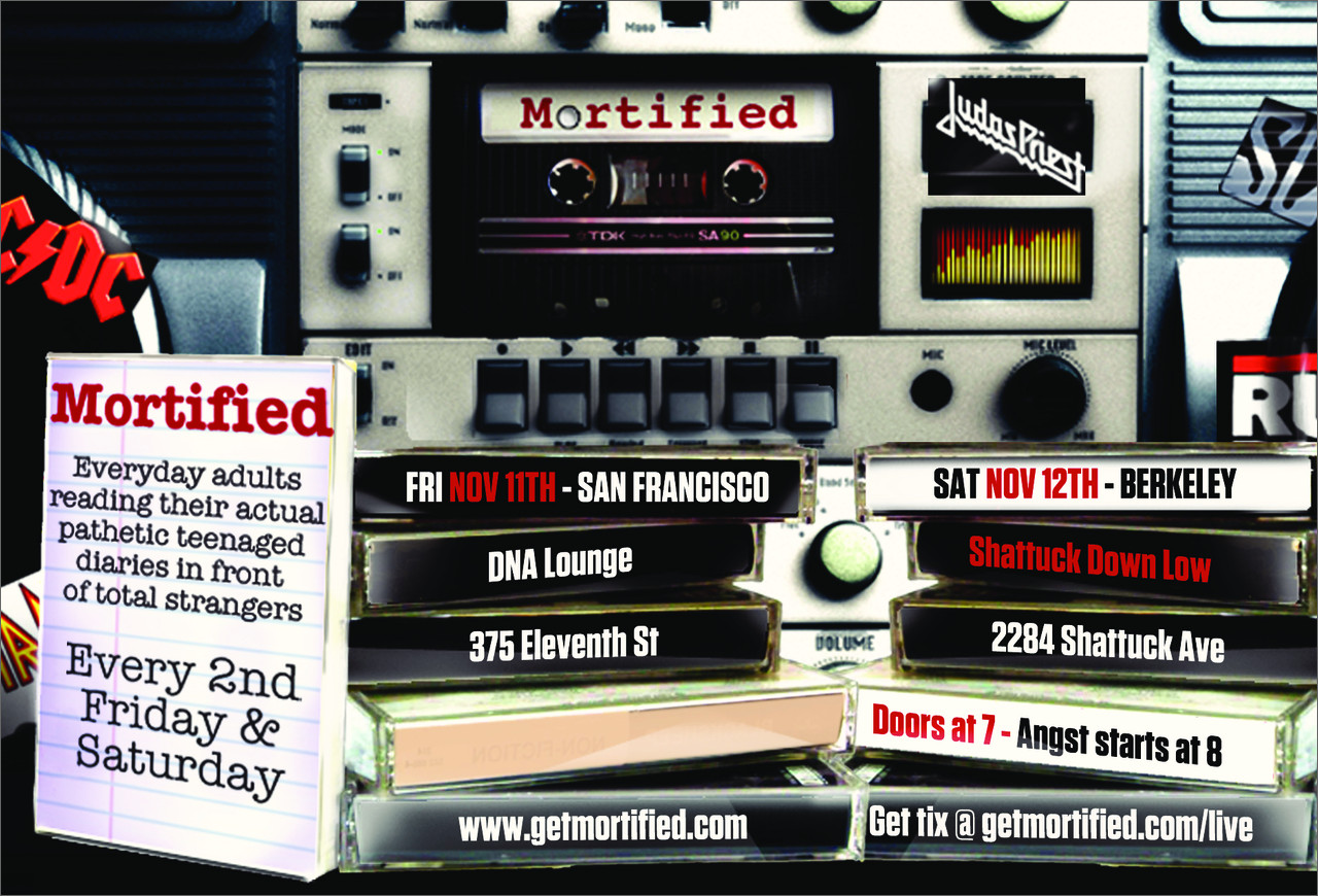 Entertainment Weekly, Mortified is a comic excavation of teen angst artifacts (journals, poems, letters, lyrics, home movies, schoolwork) as shared by their original authors -- in front of total strangers!