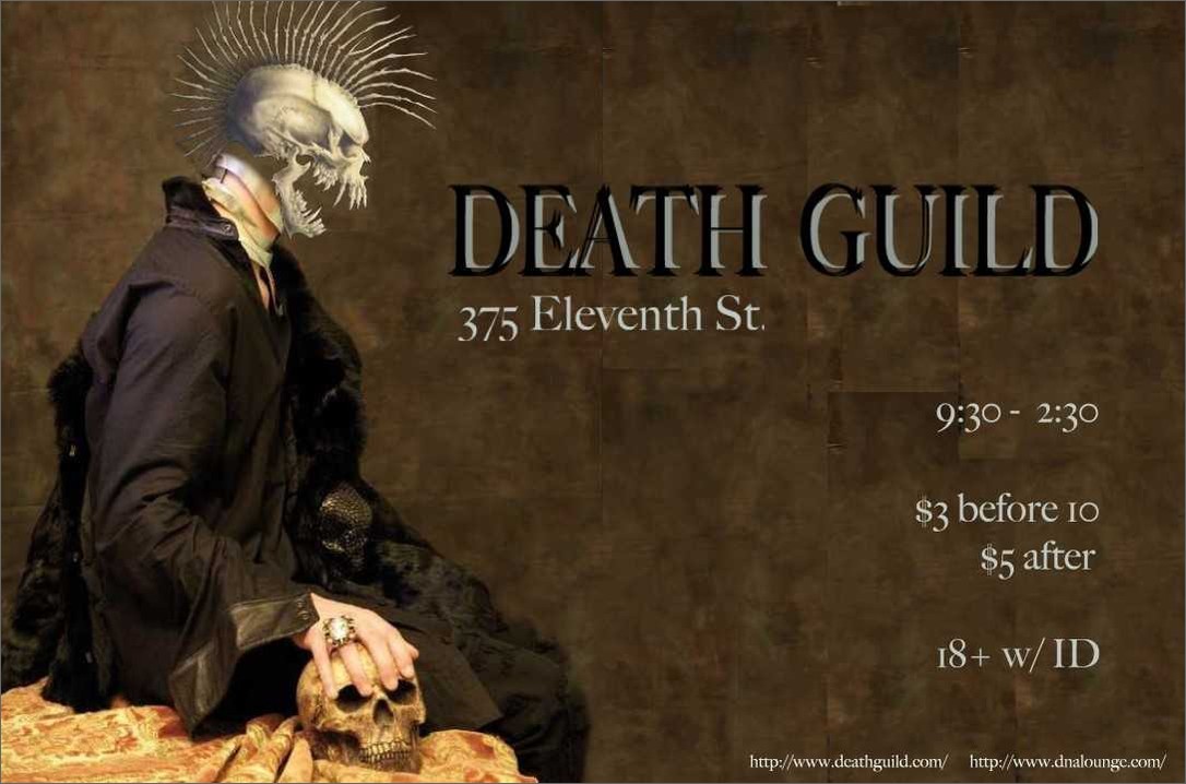 Death Guild is the oldest weekly goth/industrial dance night in the country, and the second oldest in the world! Every Monday, six DJs in two rooms play a mix of gothic, industrial, synthpop, noise, ambient, and weird stuff for those who love the darker side of things.