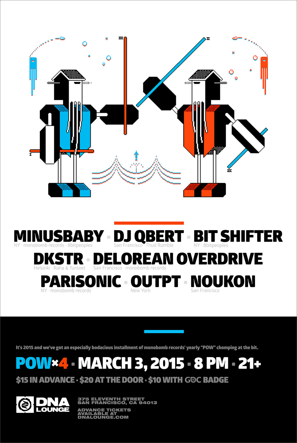 Monobomb Records are proud to present POWx4, a celebration of the indie spirit. PA colossal night of sound + vision, featuring performances by some of the best acts in both gaming and chip music as well as demo tables and presentations by indie developers.