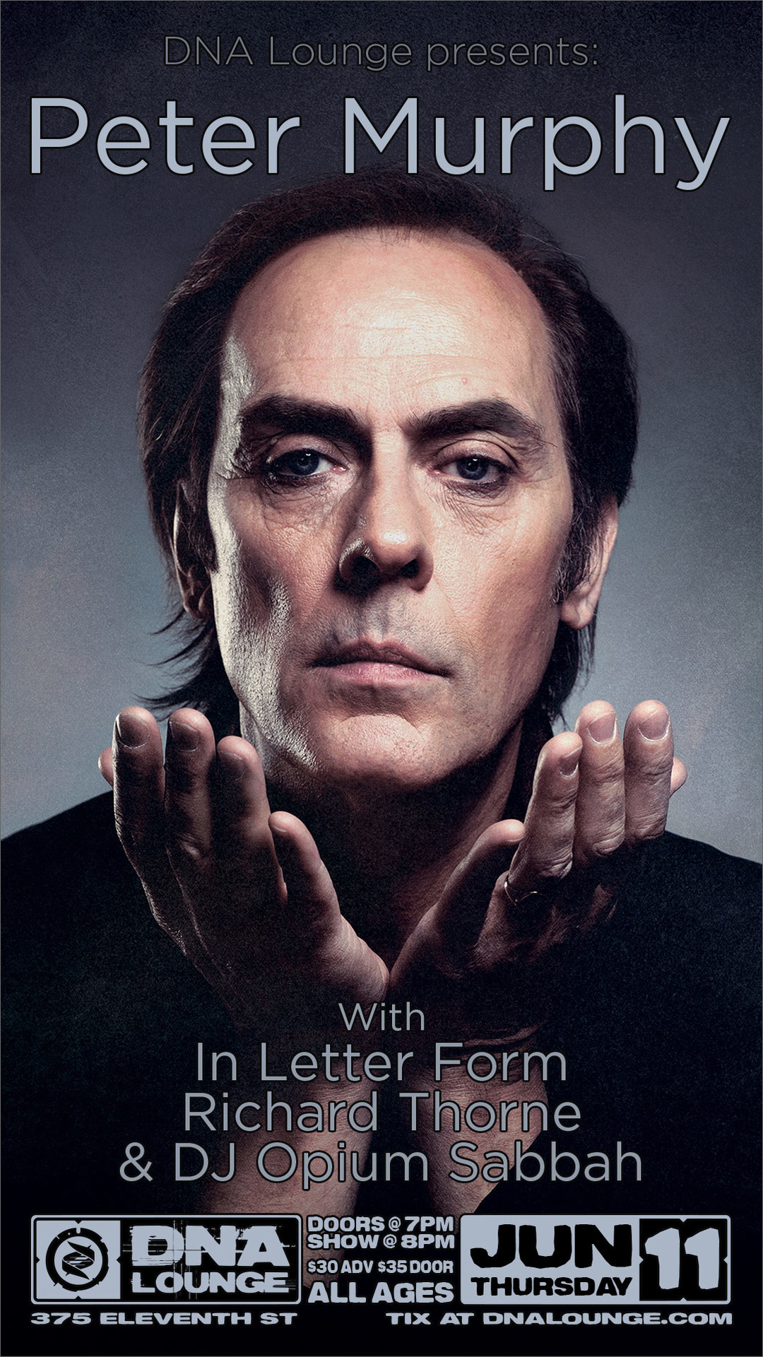 Peter Murphy. Let's not forget that this is the man from those iconic Maxell tape commercials! Murphy, whose evocative voice is still a soundtrack for young, dark-clad music fans, has a range like not many in the goth rock movement. From catchy, electronic tinged pop numbers to straight alt rock gloom, there's something for everyone in Peter's work; that shouldn't surprise you, he's been on the scene creating musical art for decades now. Whether you're an old school goth, or just want to see "The Cold One" from the Twilight movies (yep, that's Peter Murphy), you can't go wrong worshipping at the altar for his live show. For this tour, Murphy brings a stellar band, those prized cheekbones, and dark jams that span his career, you even be treated to a few Bauhaus numbers. Murphy picks up a 12-string or owns the mic like a crooner of olde, depending on the song. Get out your best 80s dance moves and be ready to drink up the darkness.