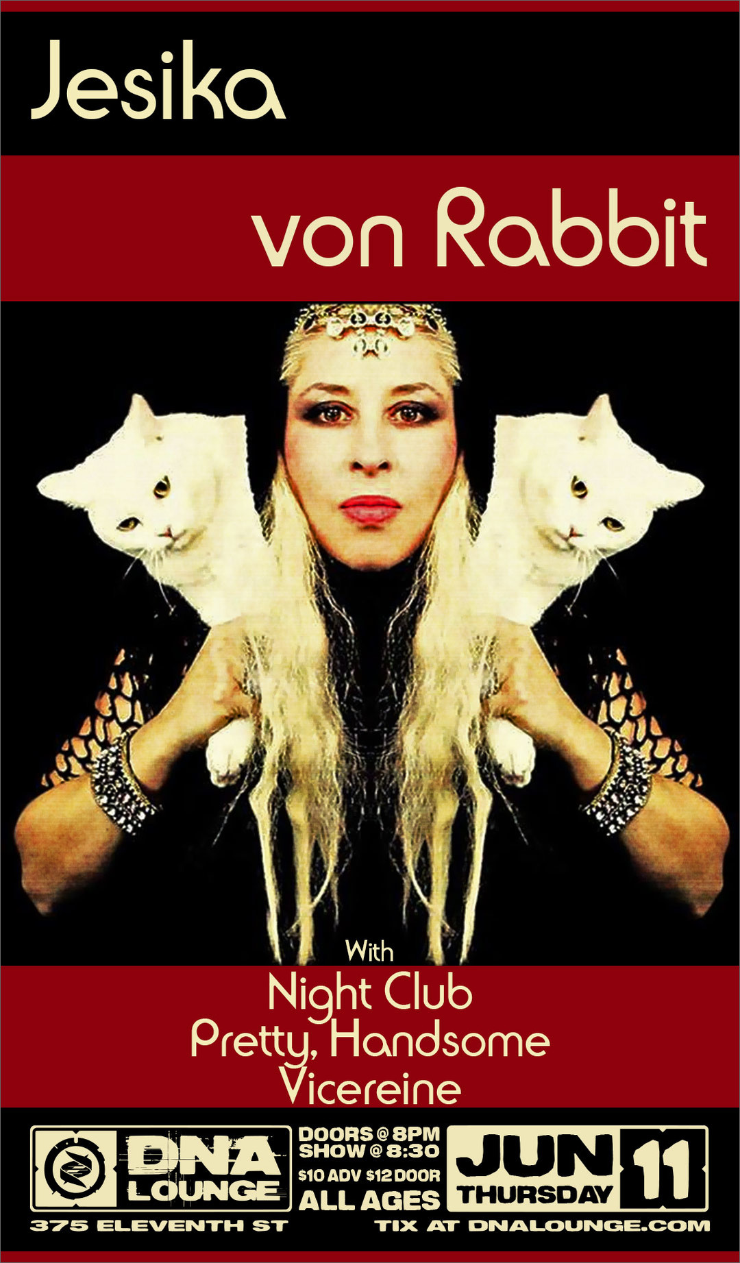 Jesika Von Rabbit as an indie disco chanteuse. Songs like "Gaydar" give you not only a sweet rhythm, but also some humor and a look into the artistic temperament of a Wisconsinite who escaped the mid-west and ended up stuck in the desert. Jesika Von Rabbit has taken a few steps to distance herself from the much-beloved Joshua Tree trio Gram Rabbit, but her creativity and uniqueness -- which was a vital part of the band's popularity -- is as strong as ever. The Von Rabbit live show is a spectacle, not yet on a Miley Cyrus scale but with just as much energy and weirdo vibes. Jesika is stationed behind her trusty keys, wearing whatever fancy thing she wants, with arthouse backup dancers on each side. The woman can belt out a tune. After a dozen years as the leader in a band, her new found freedom is a treat for all of us, in the form of smart, catchy songs that will heat up the dancefloor.