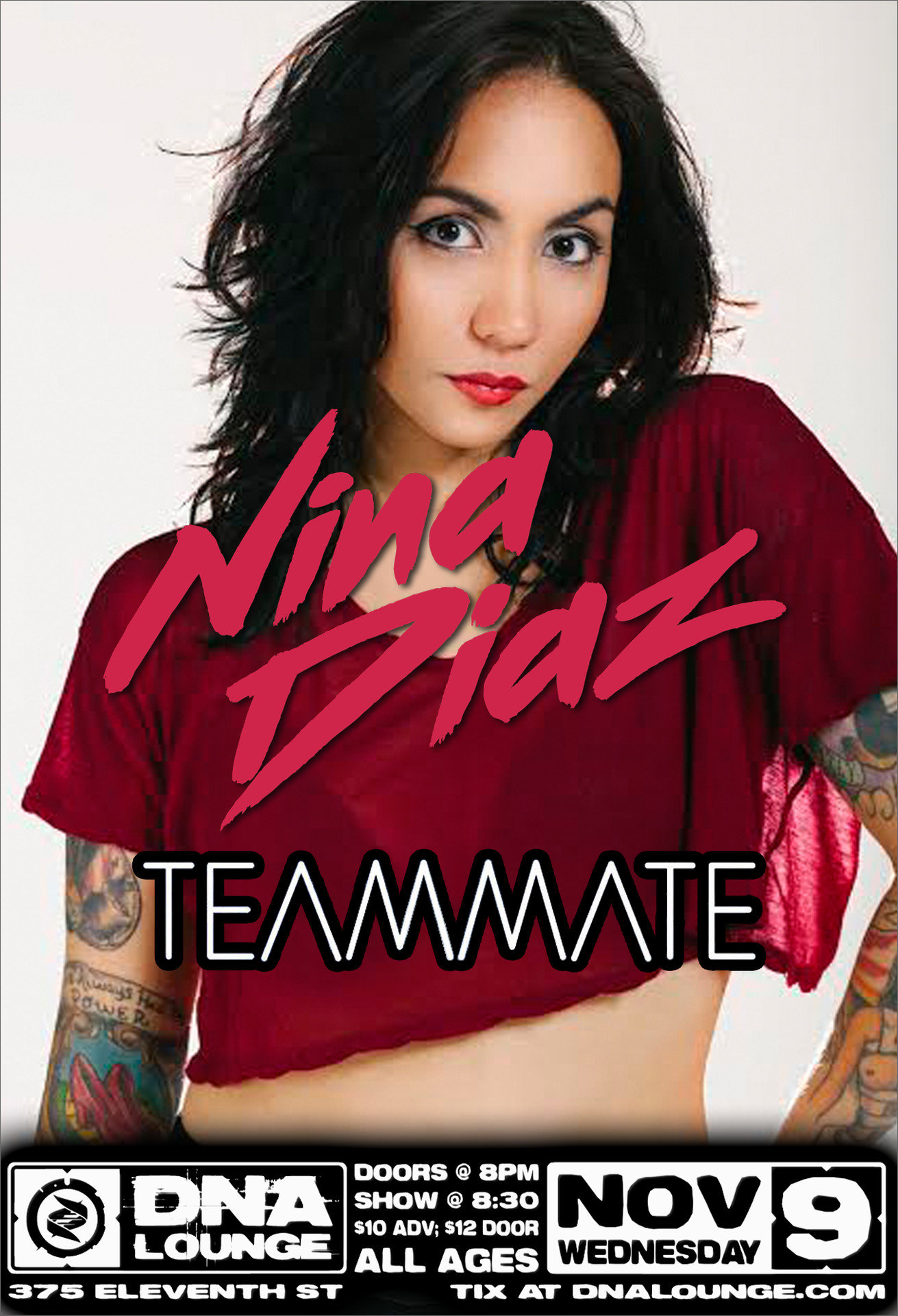 Nina Diaz decided to take some "me" time. And fans of her songwriting and unique voice can rejoice because she is good. Not just "side project of your favorite band" good, but she's easily able to stand alone as a solo artist. Girl In A Coma was noticed and signed to Joan Jett's Blackheart record label and it was through this experience that Nina got to see most of the world, opening for acts such as Frank Black and Morrissey. After nearly a decade as the front woman, it was time to feel the liberation and to cut her own path. Her solo act is mature for a 27 year old, her lush and dark voice captivates, soars and plunges with ease while she plays guitar and commands the stage. Prepare yourself for a mix of rock and latin rhythms and be ready to dance.