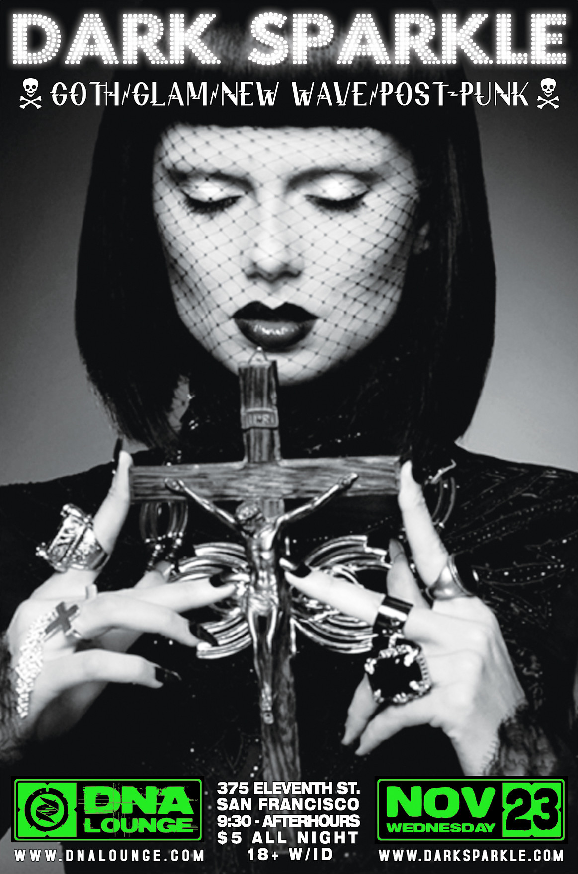 Dark Sparkle started in 1999 by bringing you "the darker side of the 70's and 80's." Through their 17 years they're reached into the darkest corners of the musical vault to bring you a unique mix of everything from goth to glam, new wave to punk, post-punk, big band, synth, and good old rock 'n' roll. There are no rules other than it have that feel that ties it all together. Dark Sparkle is happy to return to the main room of the DNA Lounge for their 17th annual holiday party. Come out to dance and hang out with friends, or simply find a dark corner to foster that holiday ennui in. Either way, this is going to be a hell of a party.