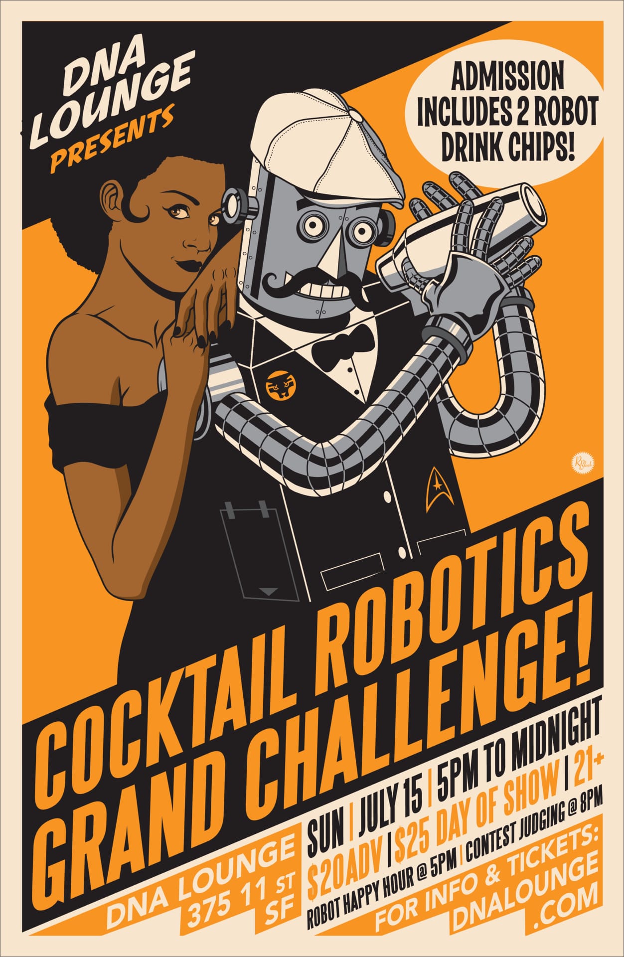 We supply the booze and you bring a robot bartender with whom you'll wow, delight, and intoxicate attendees, and our panel of celebrity judges, for $1,000 in cash prizes!