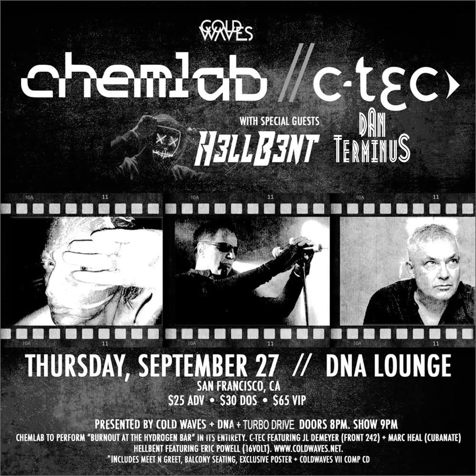 VIP package includes admission for 1, meet+greet at 7:30pm, exclusive poster, and Coldwaves VII compilation CD.