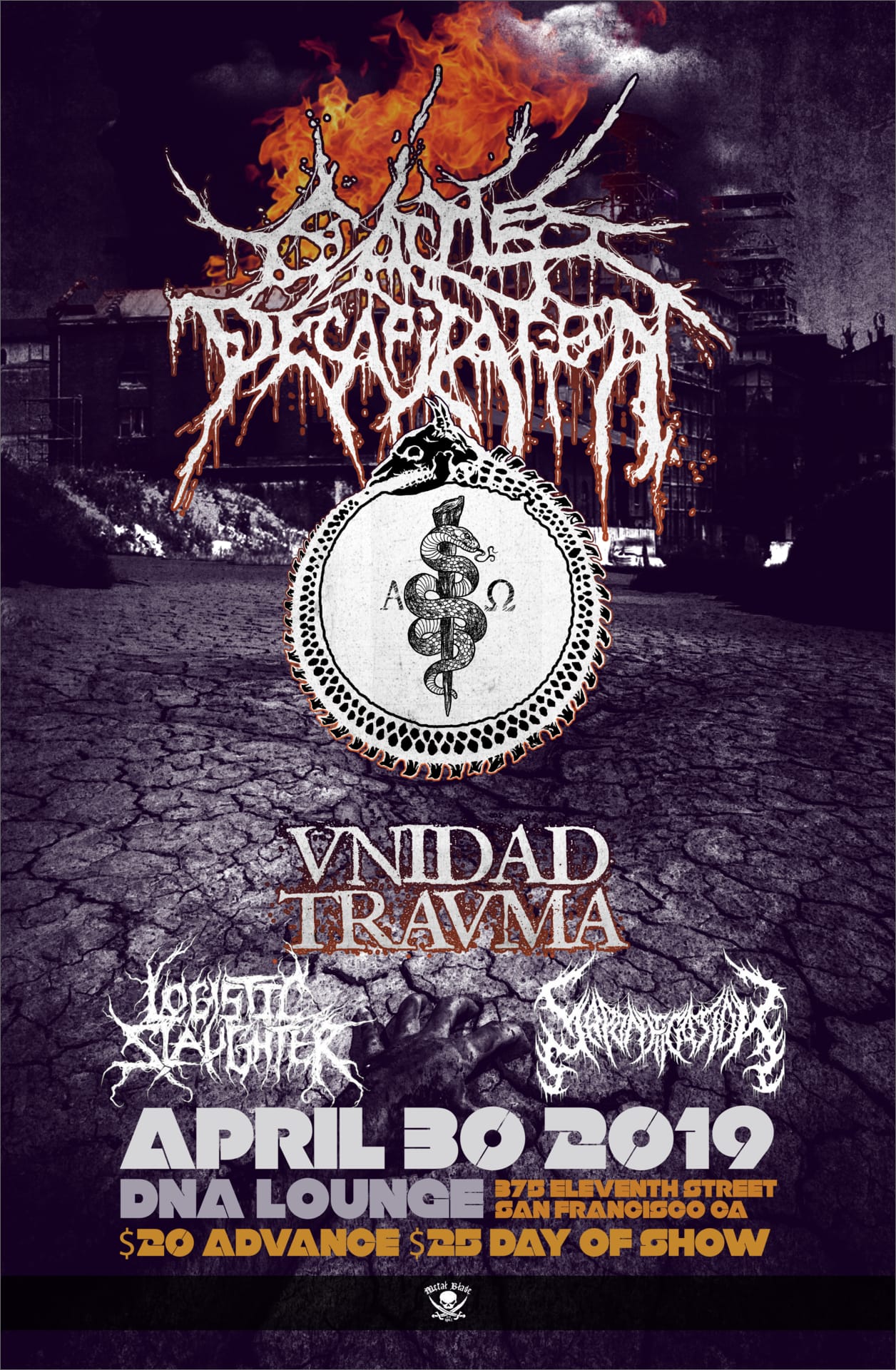 Unidad Trauma: If unhinged brutal death/grind that never quits is your thing, then this is the band for you. Hailing from Tijuana, Mexico you're immediately swept into the emergency room for a pulverizing time . The band inherently brings a genuine aesthetic to the gruesome reality of life and death, and the procedures in between.