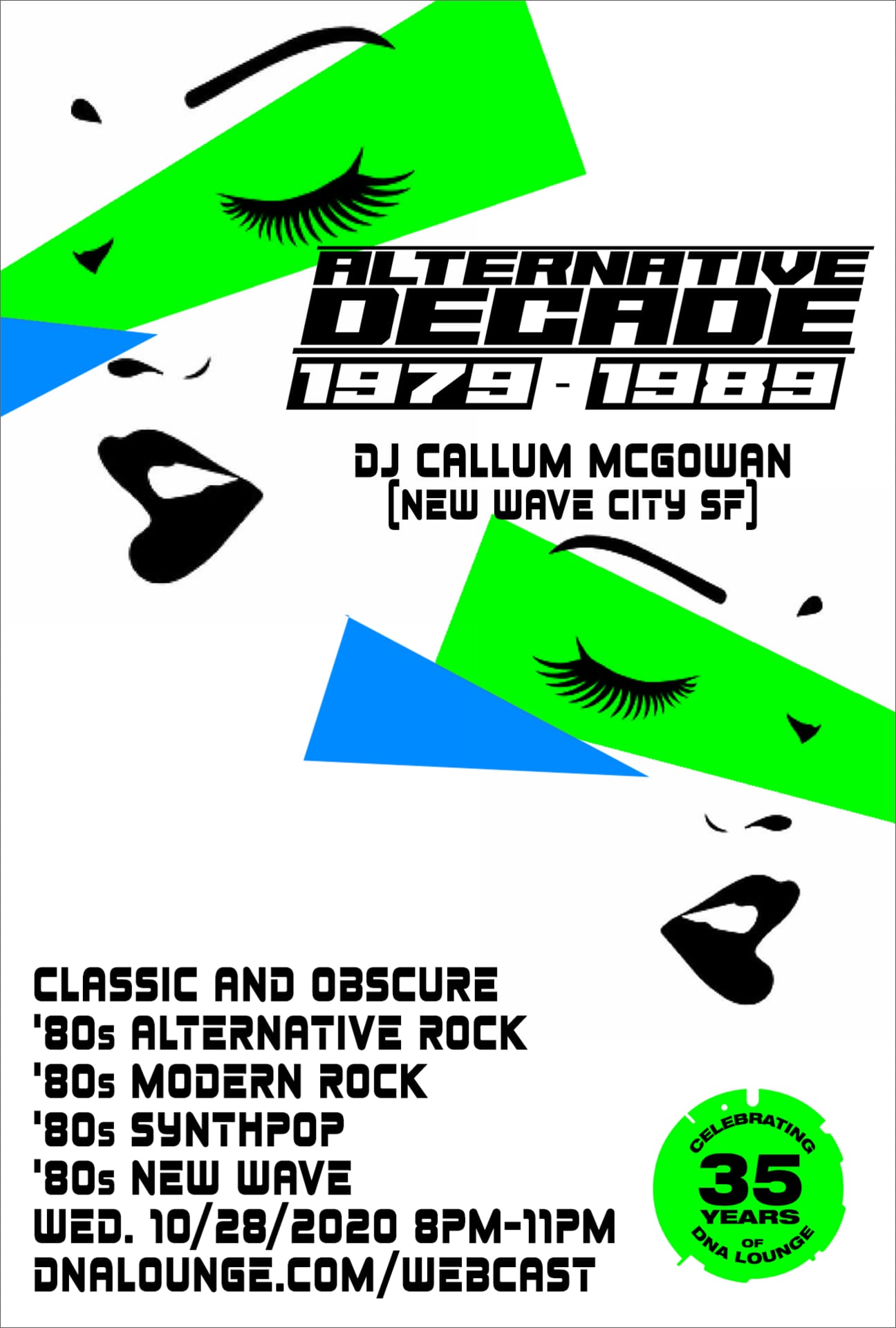 Obscure 80s alternative rock, 80s modern rock, 80s synthpop and 80s new wave, live from the DNA Lounge Main Room!